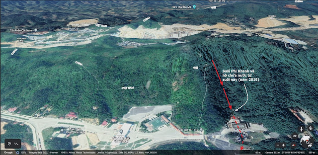 Hình ảnh cái hồ chứa nước lưng chừng núi cho thấy Trung cộng xây bể chứa nước để lưu trữ nước suối Phi Khanh trong mùa mưa Ðồng Ðăng từ tháng 12 đến tháng 5 hằng năm. Dĩ nhiȇn vì là nguồn suối từ trȇn cao, Trung cộng không thể bịt kín suối Phi Khanh.